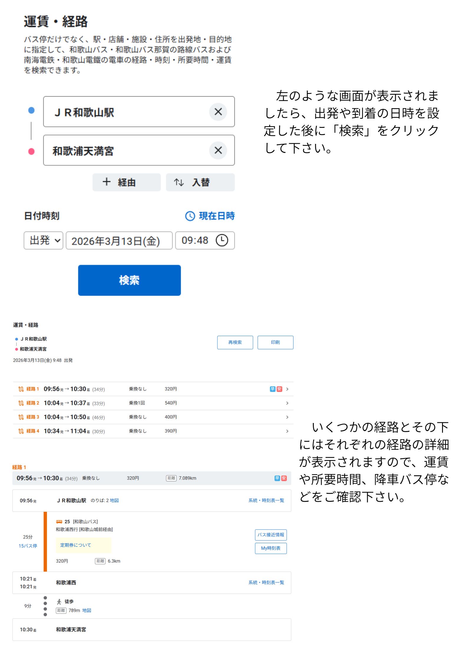 検索システム「わかやま交通案内 -Kansai Wakayama route search-」