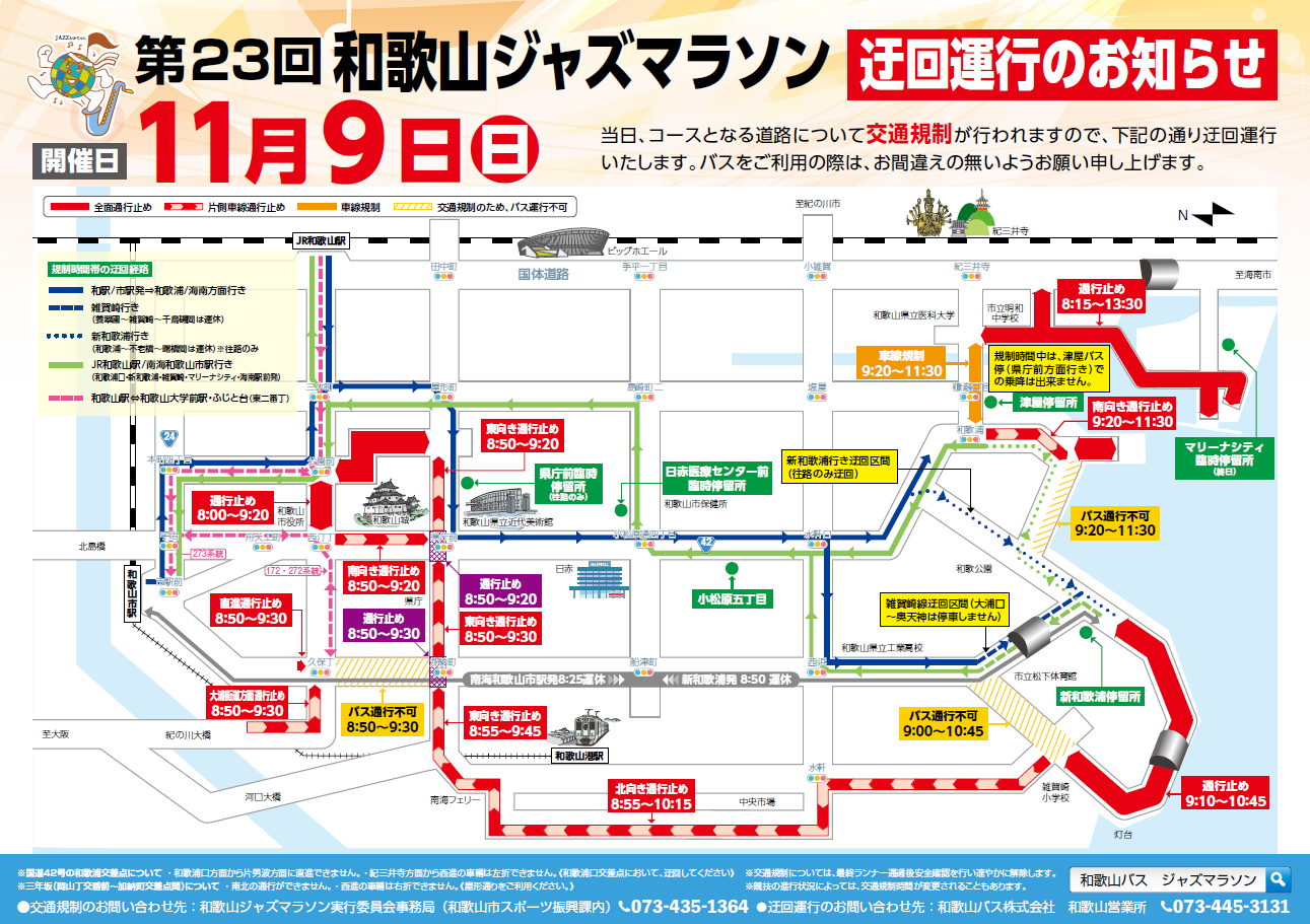 第23回和歌山ジャズマラソン開催に伴う交通規制による迂回運行について
