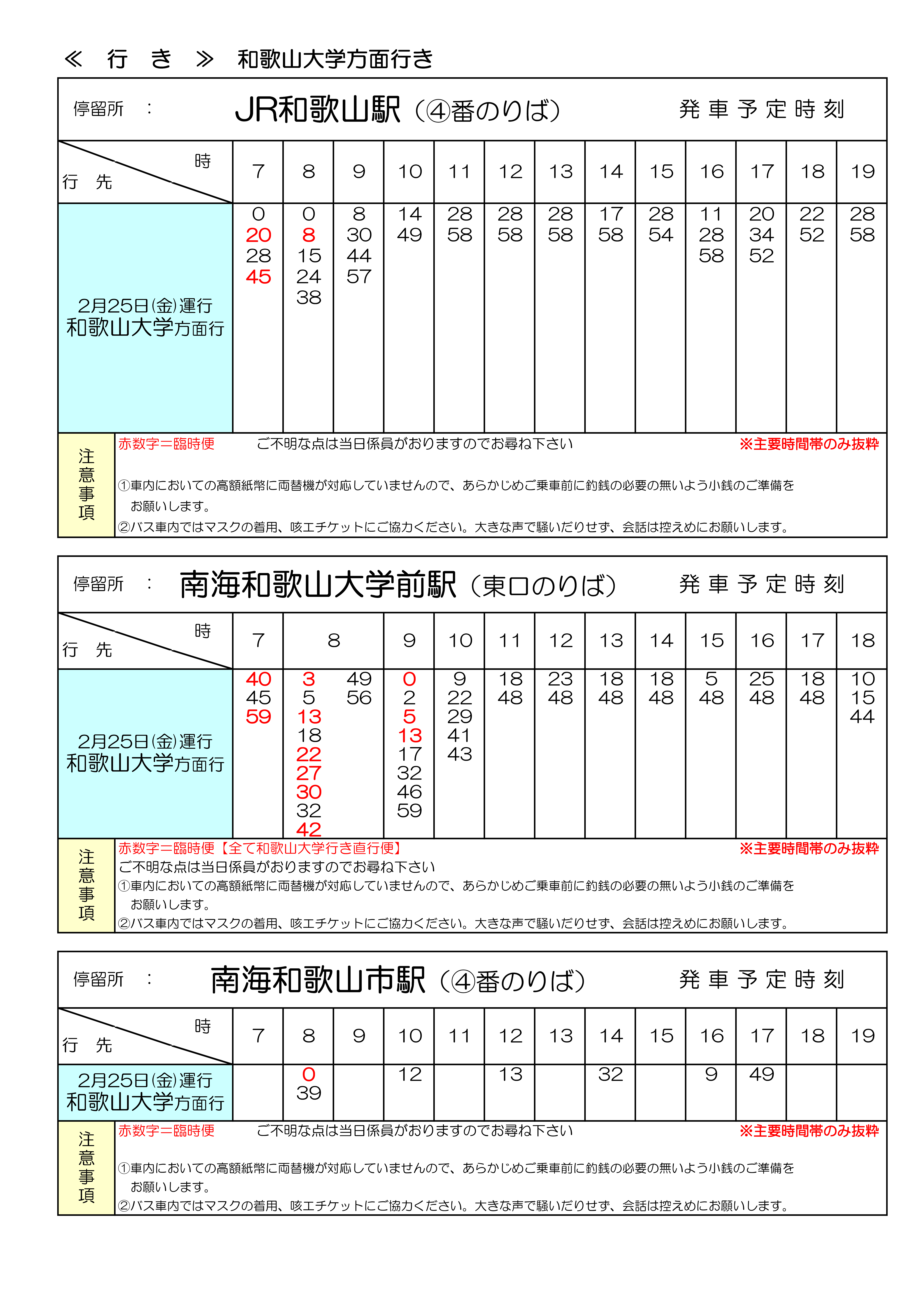 ※臨時便の情報は「わかやま交通案内」には反映されませんのであらかじめご了承ください。