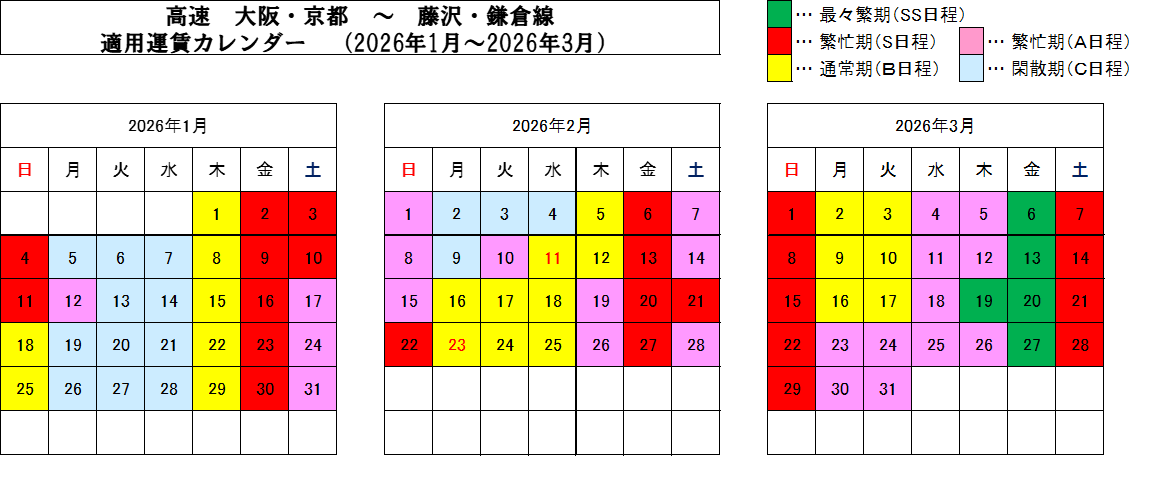 運行日によってSS~Cまで運賃が変動いたします。